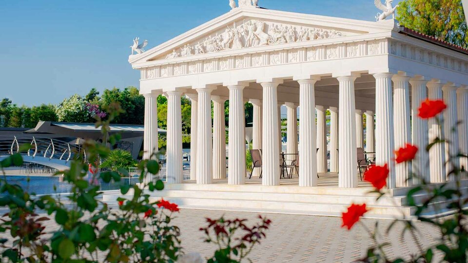 SADRŽAJ: parking, lobi sa 2 TV-a, centralni bar, wireless internet, recepcija, servis za pranje veša, salon za lepotu, besplatne ležaljke, suncobrani i peškiri oko bazena i na plaži, tri restorana, bar kraj bazena, bar na plaži, disko, bioskop na otvorenom, otvoreni bazen sa delom za decu, 2 teniska terena, bilijar, mini klub za decu, opremljena sala za konferenciju (kapaciteta 150 osoba), lekar na poziv, razni sportovi na vodi, animacija za decu, mini market, prodavnica nakita, rent-a-car...